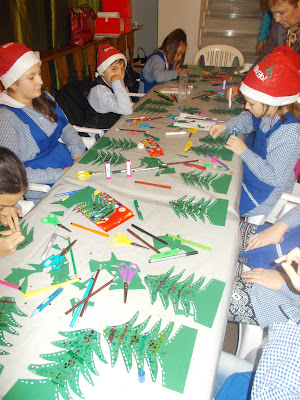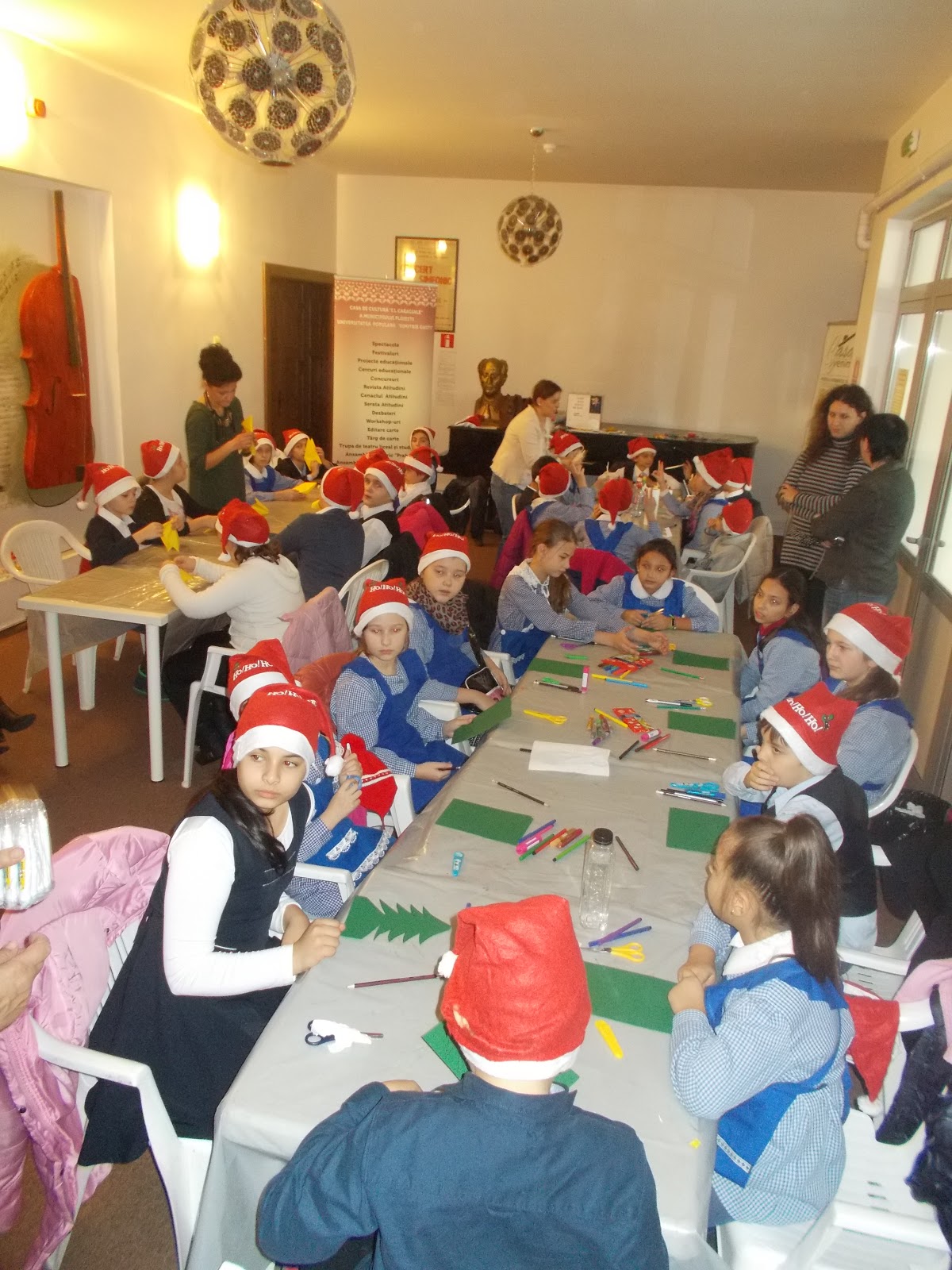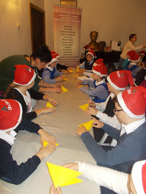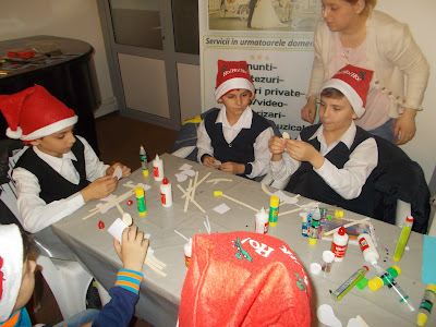 Ajutați de artiști plastici, copiii au confecționat obiecte decorative fiind , pentru căteva minute, și ei spiriduși ai lui Moș Crăciun.