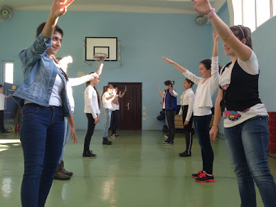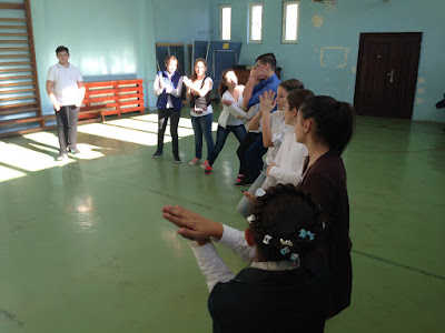 - First activity: all of us stepped in a circle, and made the energizer, the warm-up activity. We had to count from one to ten, and when we said ten, we had to "touch the sky".