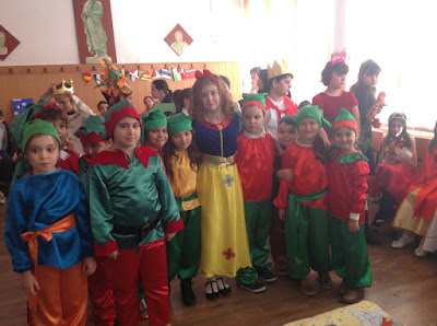 Piesa de teatru pusă în scena a fost o adaptare a celebrei poveşti “Albă ca Zăpada”, respectiv în engleză “Snow White and the seven dwarfs”.